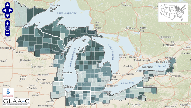 The University of Michigan’s Graham Sustainability Institute in partnership with Headwaters Economics launched an interactive map on Tuesday with the goal of supporting climate change adaptation planning in the Great Lakes region.