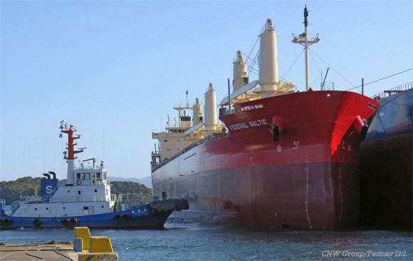 Montreal, October 22, 2015 – Today at the Oshima (Japan) shipyard, a new vessel was delivered to Fednav Limited. The Federal Biscay is equipped with a ballast water treatment system, a first for ships transiting the Great Lakes. Fednav, the largest international operator in the Great Lakes/Saint Lawrence Seaway System, announced in April that it would equip twelve of its new ships with these systems, well before the regulatory requirement.