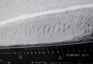 Stress corrosion cracking the length of the longitudinal seam on a section of Line 5, courtesy of nwf.org