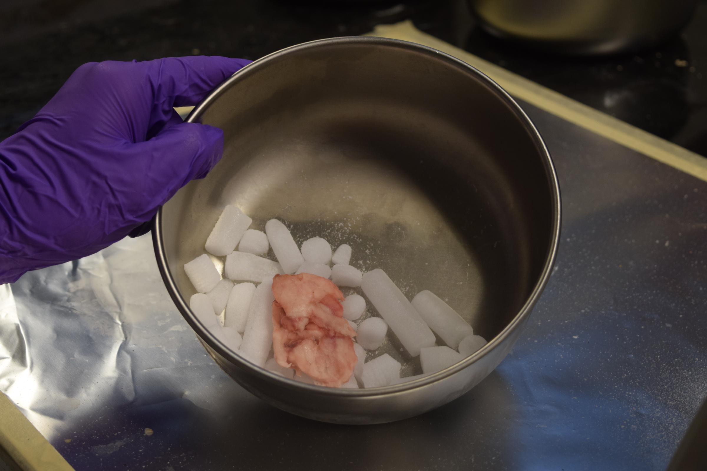 The walleye smoothie is the first step in a lengthy process to extract the toxin from the fish. Professor Stuart Ludsin leads the research team.