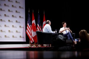Prime Minister Trudeau takes part in an arm chair discussion with David Axelrod at the University of Chicago, courtesy of flickr.com