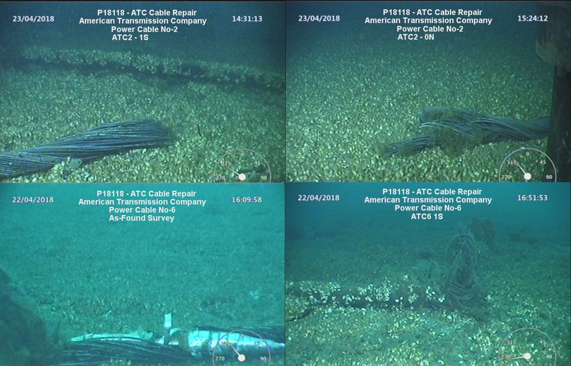 “I see some kind of armored cable that looks shredded and looks severed. And again, we are only seeing a very small piece of that, but the bottom looks to be covered with zebra or quagga mussels. Whatever this is – if this is the ATC electrical cable, as it is labeled – it looks like it’s been totally severed. And wound up. it’s not a pretty sight. “
