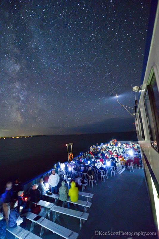 Jump a ride on an evening sky cruise on balmy summer nights along the Straits of Mackinac in Michigan with Shepler’s Ferry Service and dark sky advocate Mary Stewart Adams