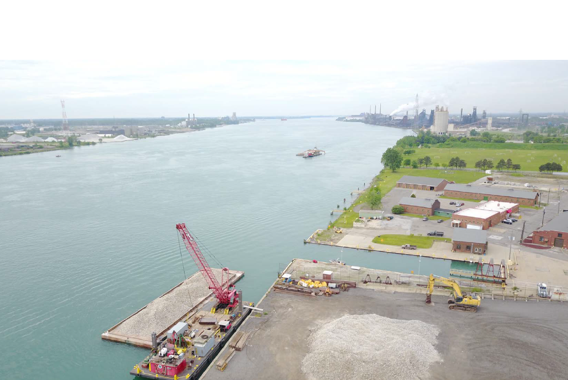 Featured Image: Aerial view of barge construction, Photo by Great Lakes Dock & Material via Michigan Sea Grant