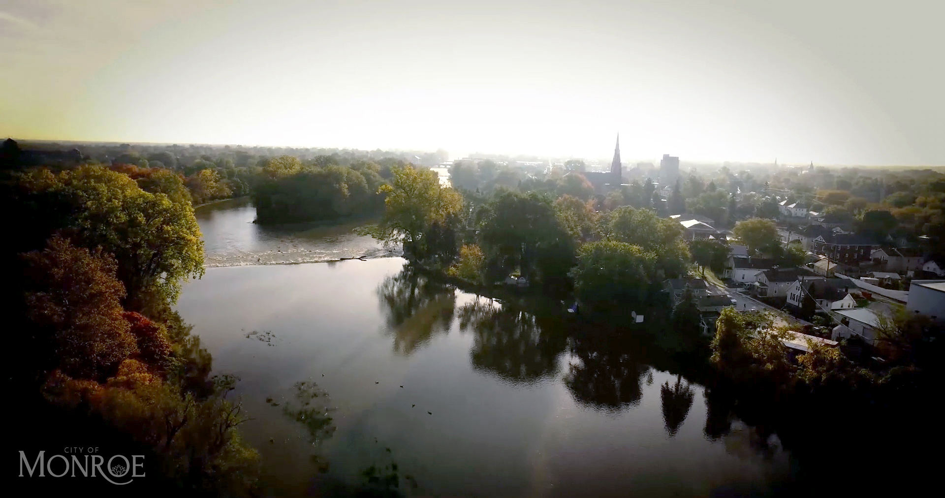 Featured Image: River Raisin as it flows through Monroe, Michigan, Photo by City of Monroe