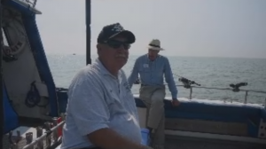 He demonstrated how the disc is used to create science-based facts on water clarity, explaining the method as he lowered the disc into the water, then recorded the depth when those peering over the side could no longer see the disc. Charter captains like McGee also provide water samples to Ohio State University’s Stone Lab on Gibraltar Island throughout the season. Scientists began harvesting data from charter captains, who have a vested interest in the health of the lake, a few years back. And it works well. Captains send data in from completely random locations on the lake during the season and scientists use that data to work on solving the algae issue. McGee said that not only do Fish Ohio participants get to see what’s going on with the lake and its captains, but so do regular customers who are aboard when he and other captains perform data-collection tasks.