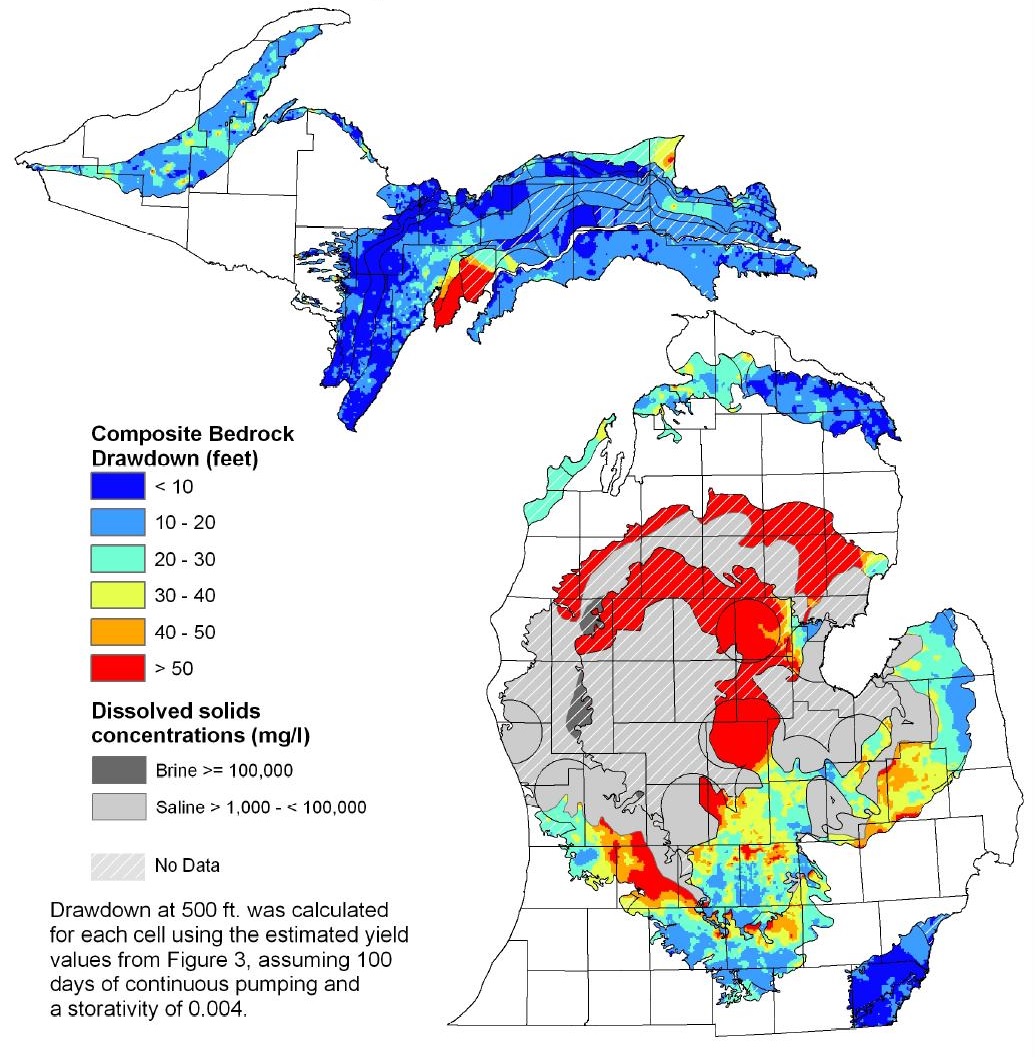 Featured Image: Bedrock Aquifers – Estimated Drawdown, Image by egr.msu.edu