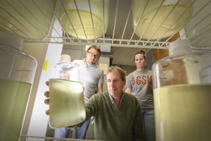 Dr. George Bullerjahn works with Timothy Davis, and Taylor Tuttle, Photo by BGSU via Sarah Bednarski