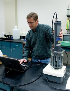 Tom Johengen at work in the laboratory calibrating instruments for field work, Photo by GLERL via flickr.com cc 2.0