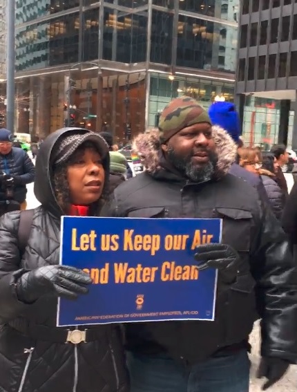 The demonstration, led by the American Federation of Government Employees (AFGE), took place just steps from the EPA’s Great Lakes Region headquarters and had two themes: end the shutdown putting people back to work and protect the environment.