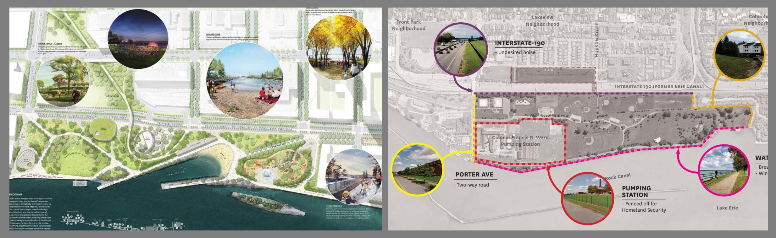 The 77-acre LaSalle Park sits where the Niagara River meets Lake Erie. The University at Buffalo’s Regional Institute led a community-based planning effort to develop a community vision for the park in 2018 and New York-based Michael Van Valkenburgh Associates is now doing the design for both parks, with support from the Wilson Foundation.