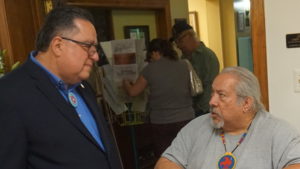 Levi Rickert (left) chats with Warren Petoskey ahead of Rickert’s presentation
