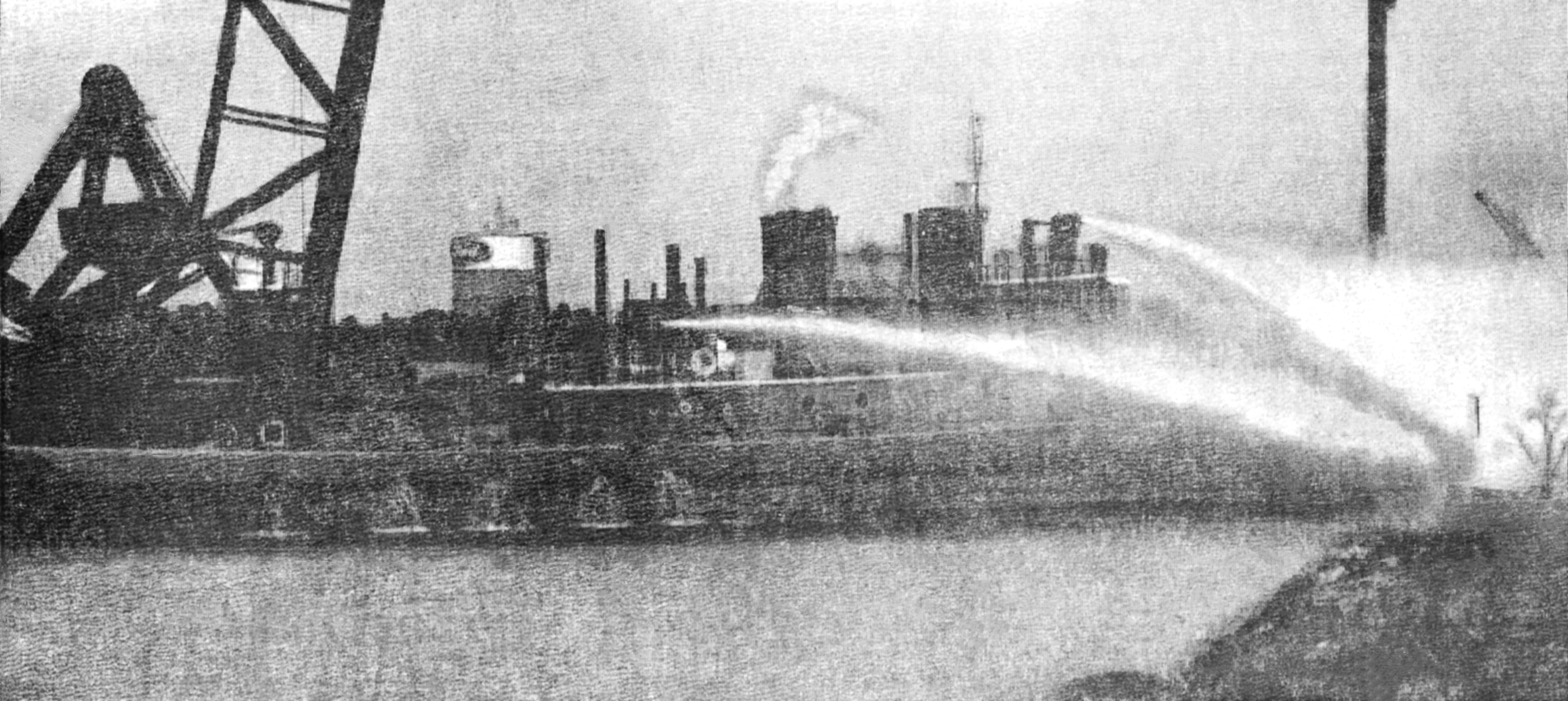 Featured image: The fireboat John Kendall fighting the fire on the Rouge River on Oct. 9, 1969. Photo from the River Rouge Herald, courtesy of the River Rouge Historical Society.