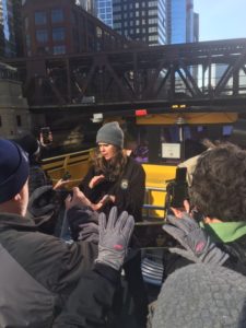 Amy McGovern, U.S. Fish and Wildlife Service explaining eDNA testing in the Chicago River, Photo by Gary Wilson