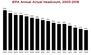 The report highlighted the issues with the agency in order to call for a renewed investment to restore the agency back to where it was 15 years ago. In 2003, the IEPA had 1,265 employees. In 2018, the agency had 639.