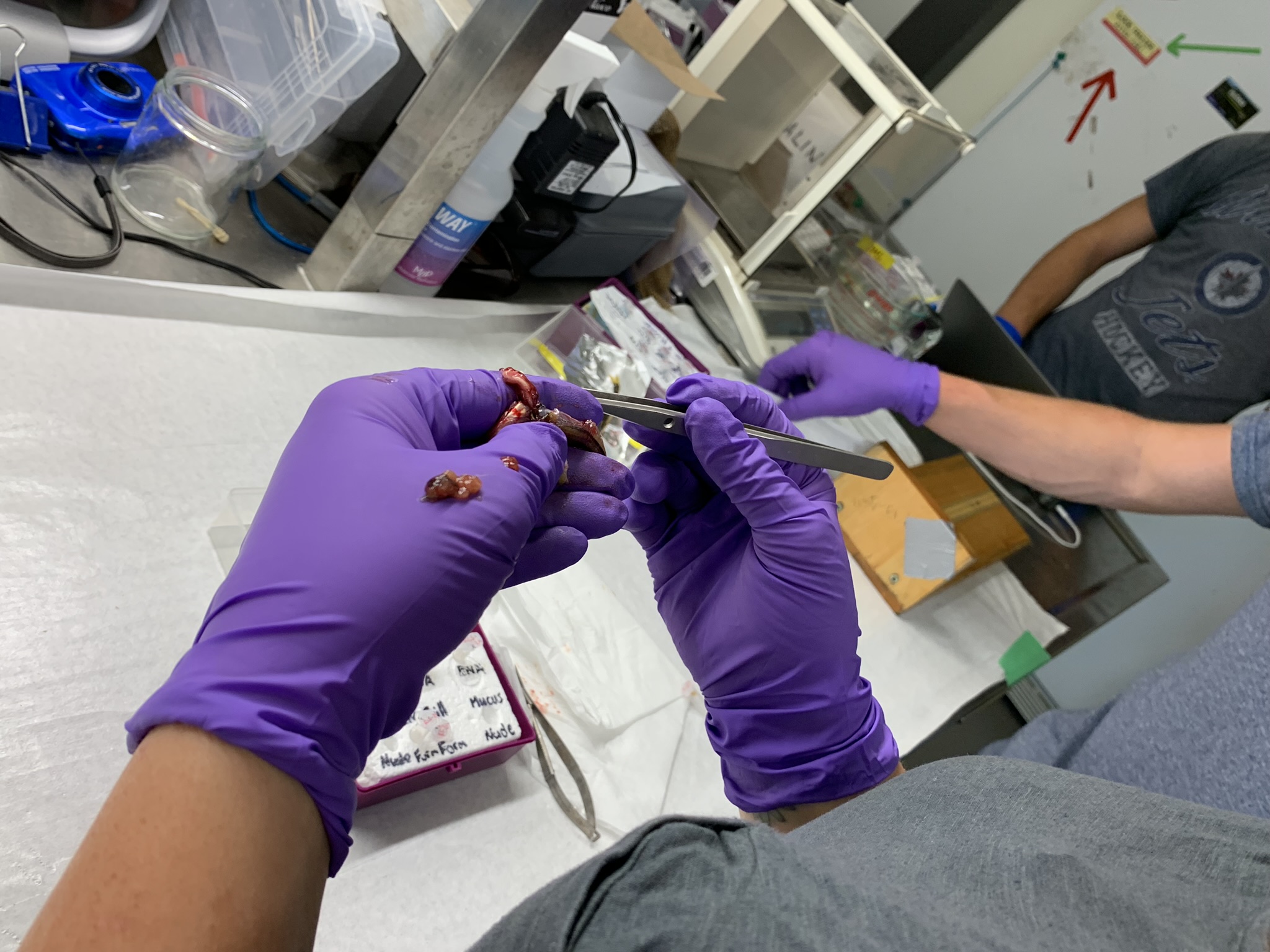 Fish dissections are part of the work at the International Institute for Sustainable Development’s Experimental Lakes Area labs, Photo by Sandra Svoboda.