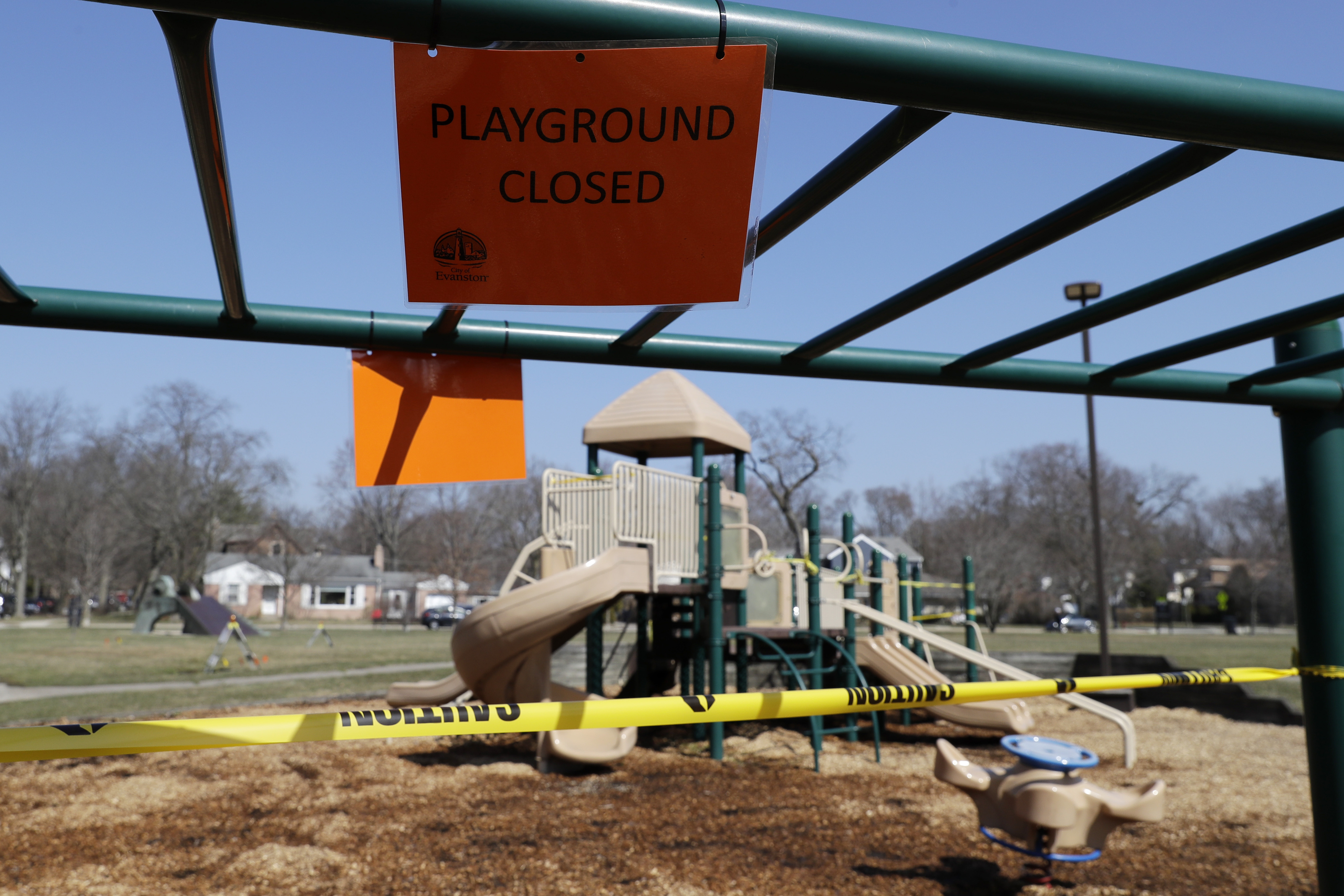 They have padlocked playgrounds and taken down basketball hoops and tennis nets. They have fenced-in parks or spider-webbed entrances with yellow tape, making them look like crime scenes.