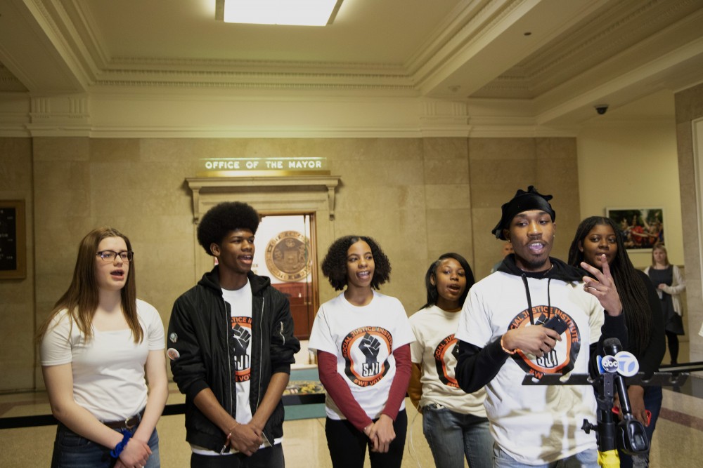 Featured image: Jai Simpson, a member of a Chicago student environmental group called the Social Justice Institute, joined other activists in imploring Mayor Lori Lightfoot to reinstate the city’s department of environment. (Brett Chase/BGA)