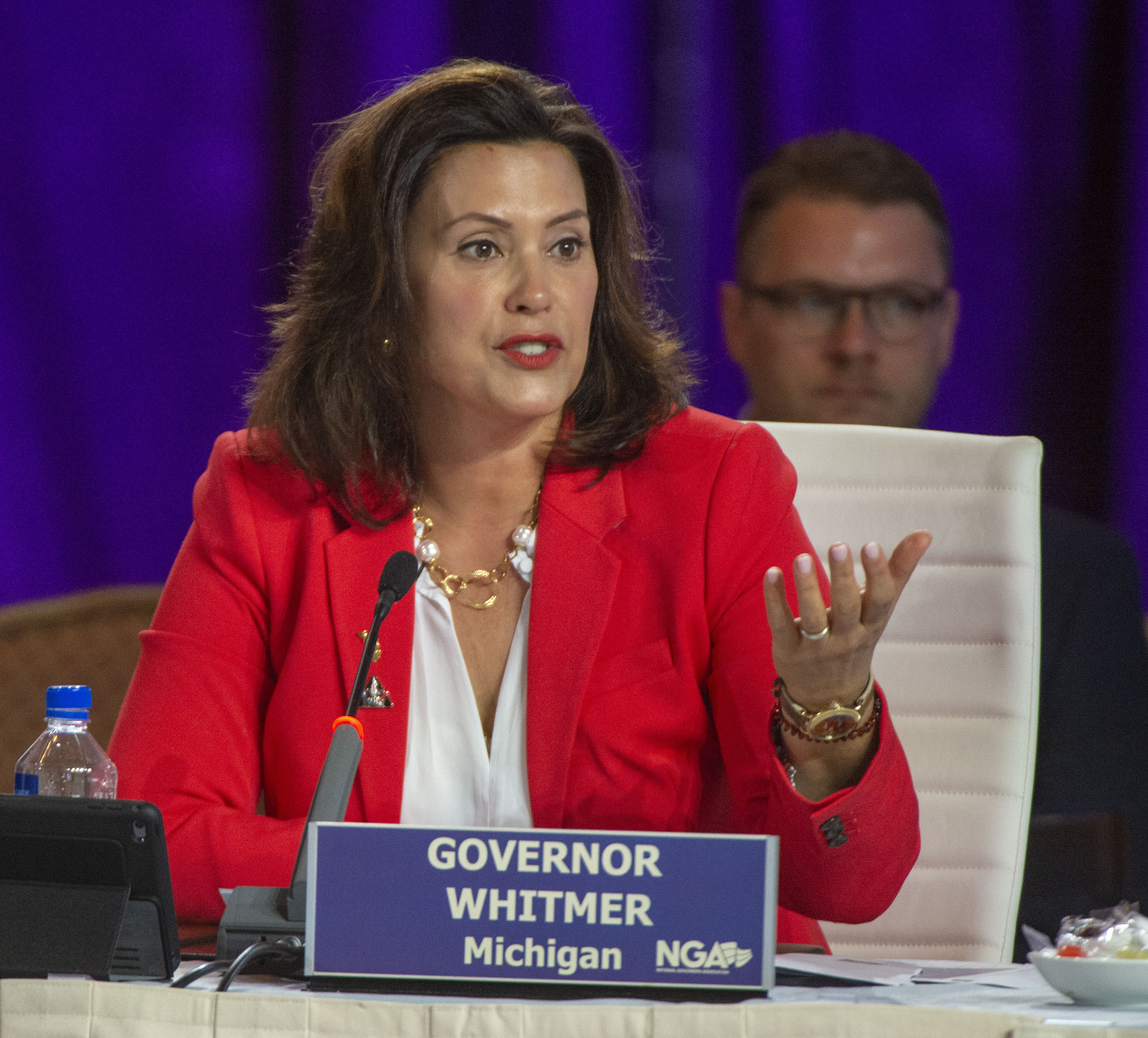 Featured image: Michigan Gov. Gretchen Whitmer speaks during a session at the National Governor’s Association conference in Salt Lake City. (Rick Egan / The Salt Lake Tribune via AP file)