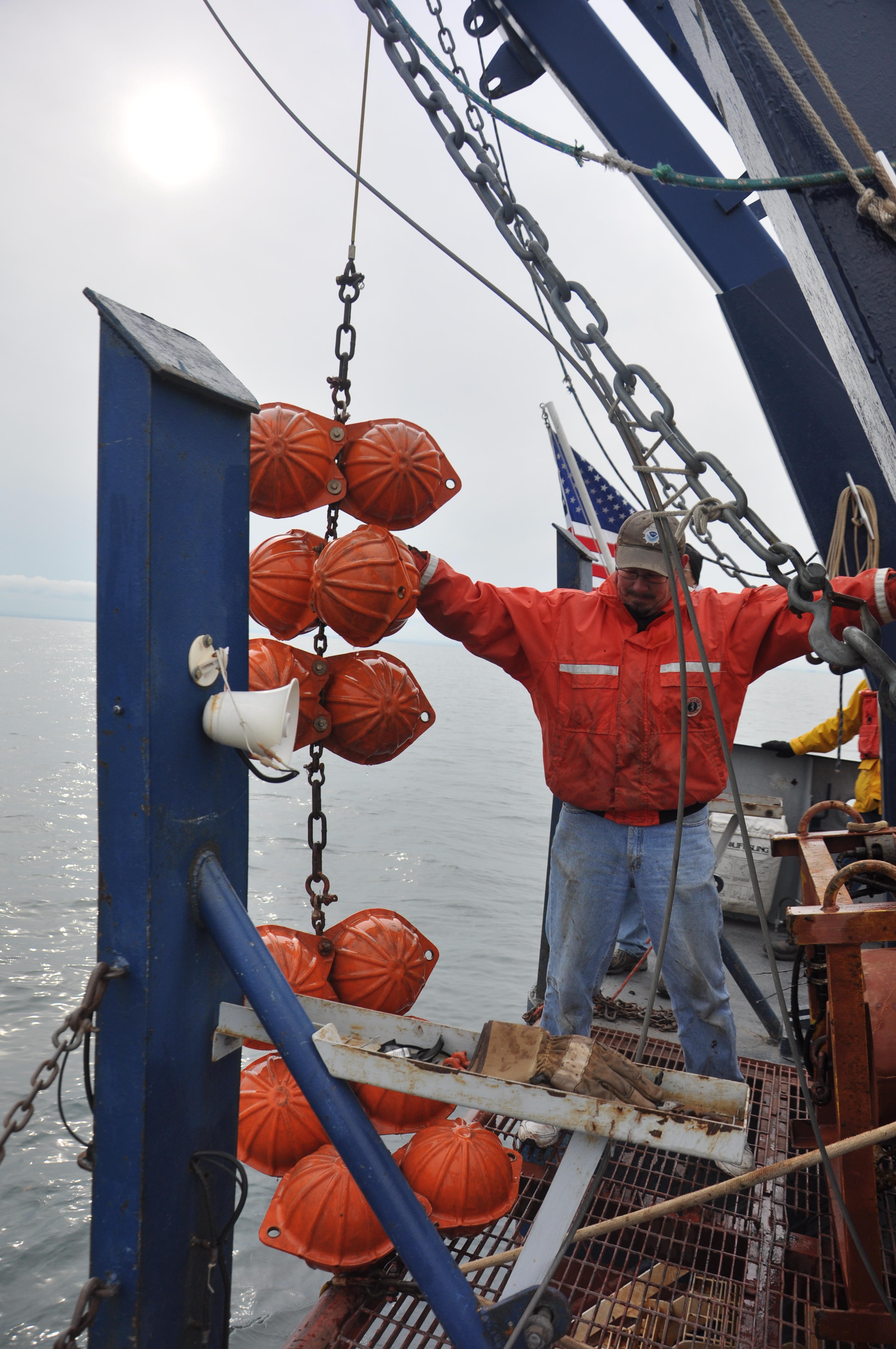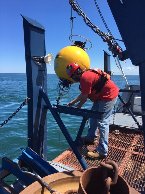 Jay Austin heaved several of these science experiments off a boat last fall – tossing concrete blocks into the deep water to anchor the cable of sensors stretching down from floating platforms just below the surface. In the spring, he will collect them and download their readings. Austin is a physicist at the University of Minnesota Duluth’s Large Lakes Observatory who studies the thermal structure of lakes and has been taking Superior’s winter temperature since 2010.