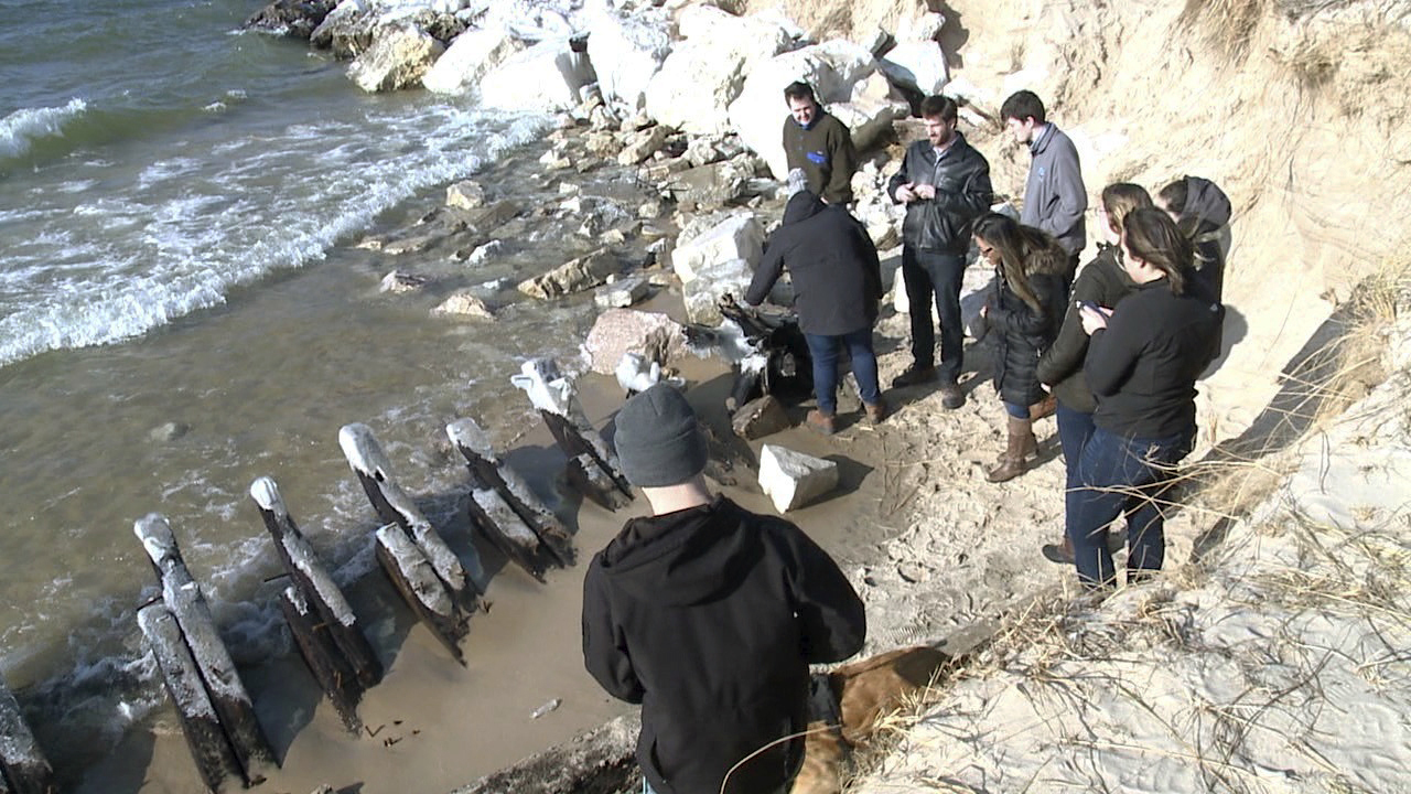 Featured image: In this Dec. 10, 2018 file image made from video and provided by WXMI-TV, people look at the remains of a Lake Michigan shipwreck on a shore near Whitehall, Mich. A change in Lake Michigan water levels has revealed the shipwreck from the 1880s that is visible in western Michigan for the first time since 2018. Experts believe it’s the wooden spine of the Contest, said Craig Rich, director of the Michigan Shipwreck Research Association. (WXMI-TV via AP File)