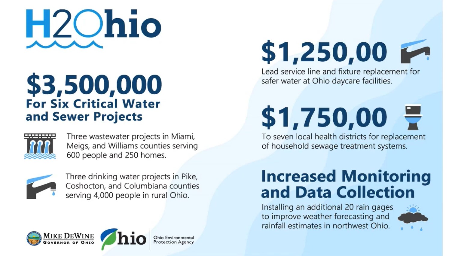 H2Ohio’s to-do list for the OEPA includes replacement of lead lines serving schools and daycares; repair and replacement of some failing residential septic systems; and a number of drinking water and municipal sewage treatment projects.