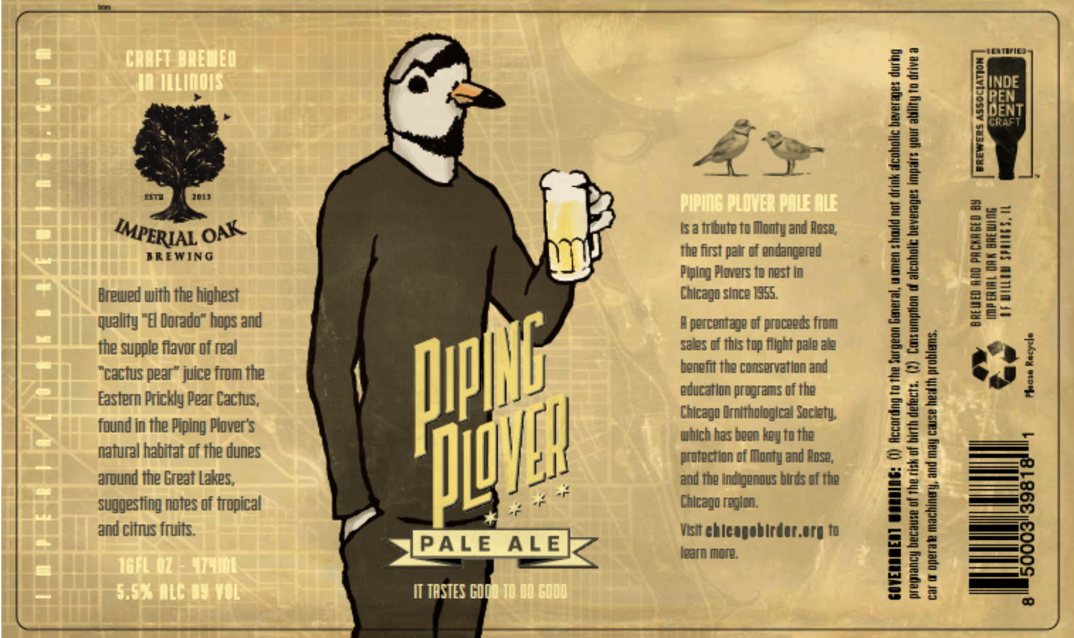 Imperial Oak Brewing, in collaboration with the Chicago Ornithological Society, first released their Piping Plover Pale Ale in 2020 and will be releasing a new batch this summer.
