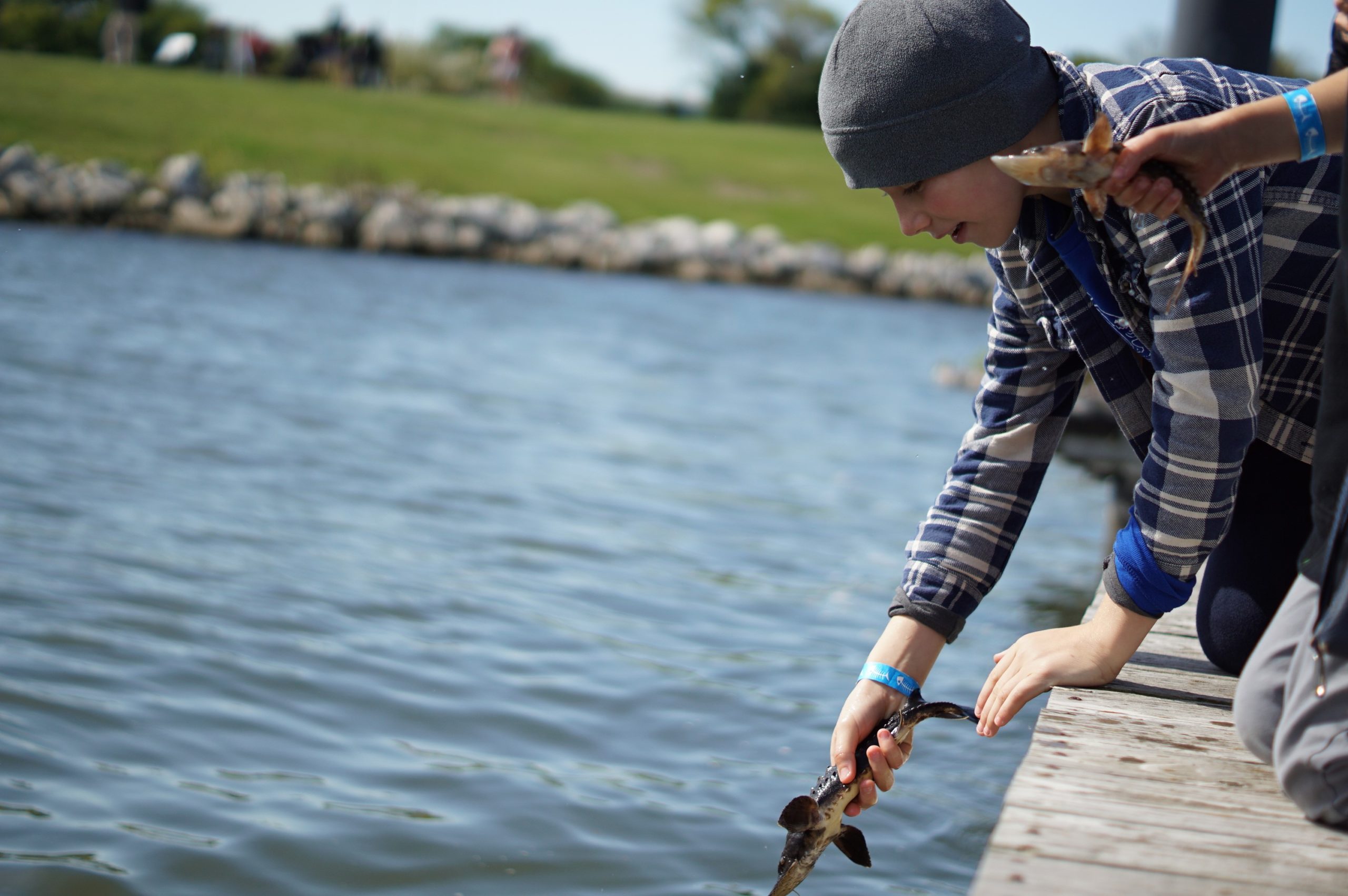 Featured image: Attendees releasing sturgeon at the 2019 Sturgeon Fest (Photo Credit: Ed Makowski/Riveredge Nature Center)