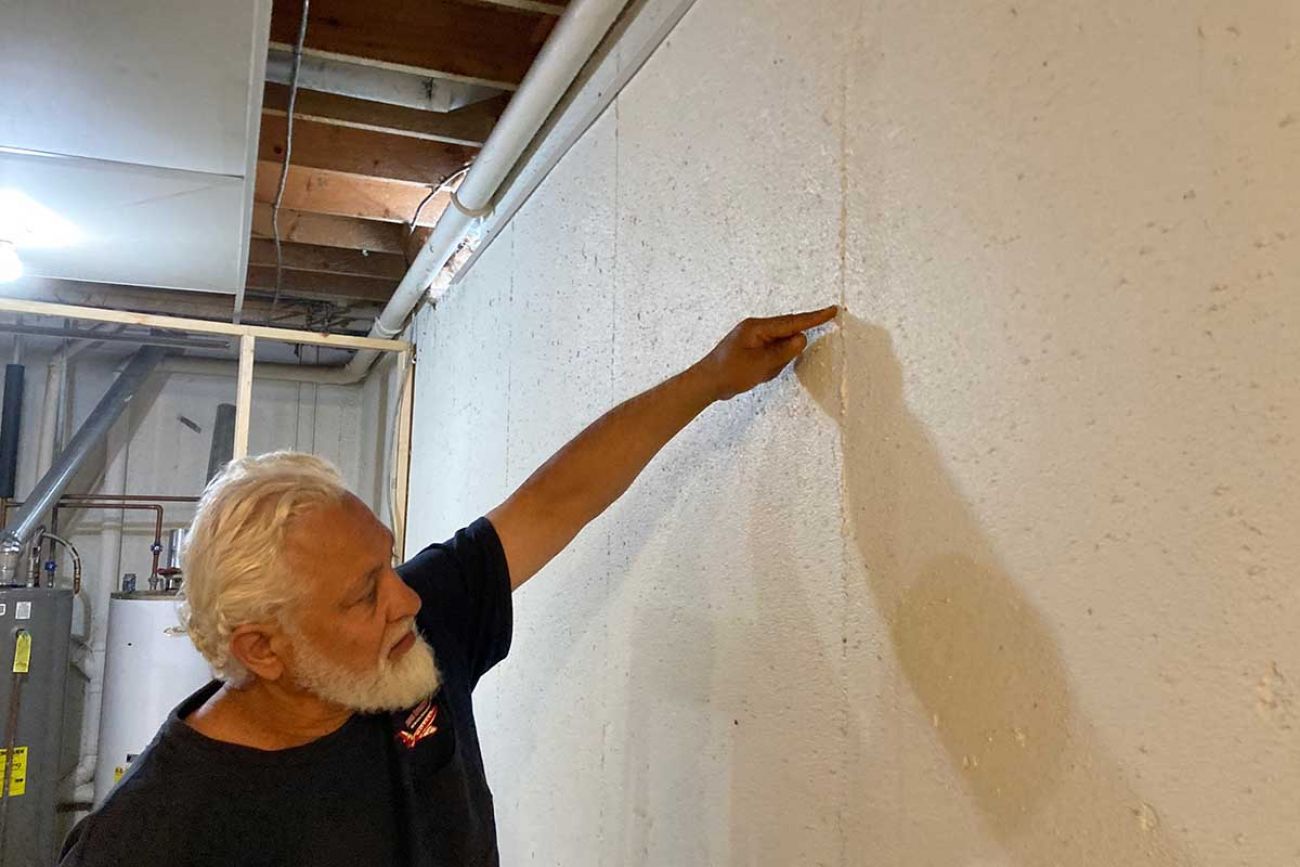 Featured image: Mohammad Al Hajmoussa inspects the cracks in his walls, which he said emerged after massive flooding hit Dearborn in late June. Now, he says, water seeps through the walls every time it rains. (Bridge photo by Kelly House)