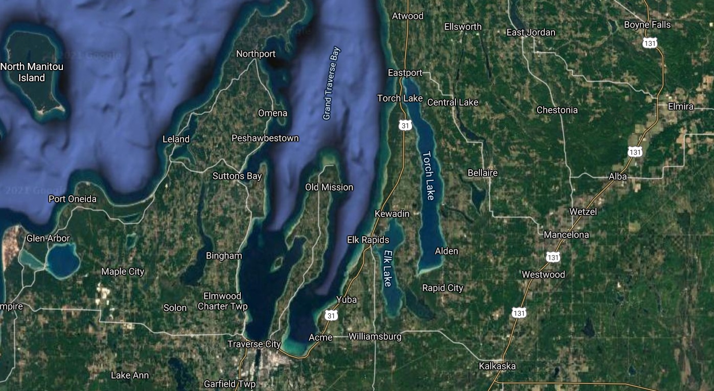 Featured image: Google map image of Torch Lake, Mich.