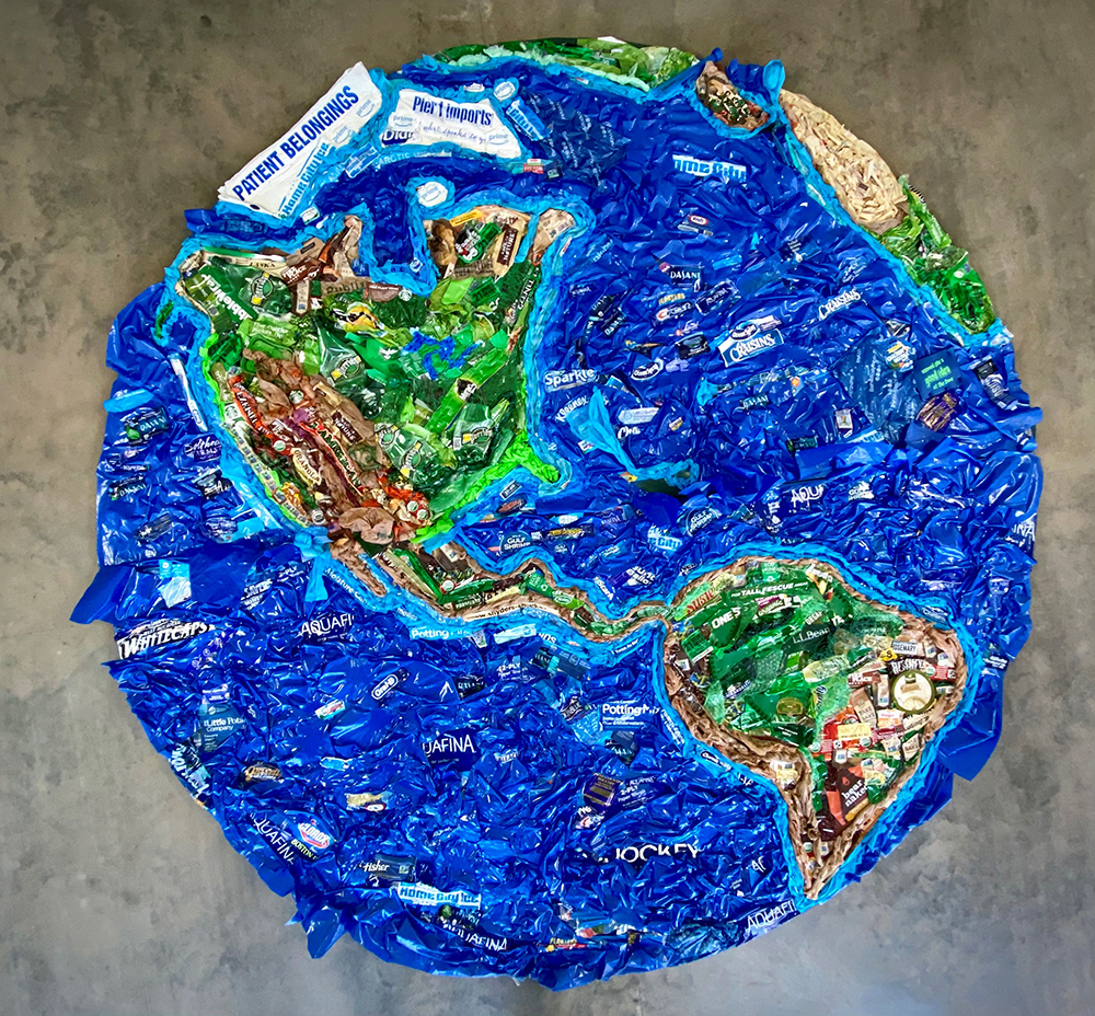 Matsen included recognizable brand labels, such as Nestle, Amazon Prime and Meijer, in the piece in hopes that it would start a discussion of how to make brands more responsible for the single-use plastic they produce.