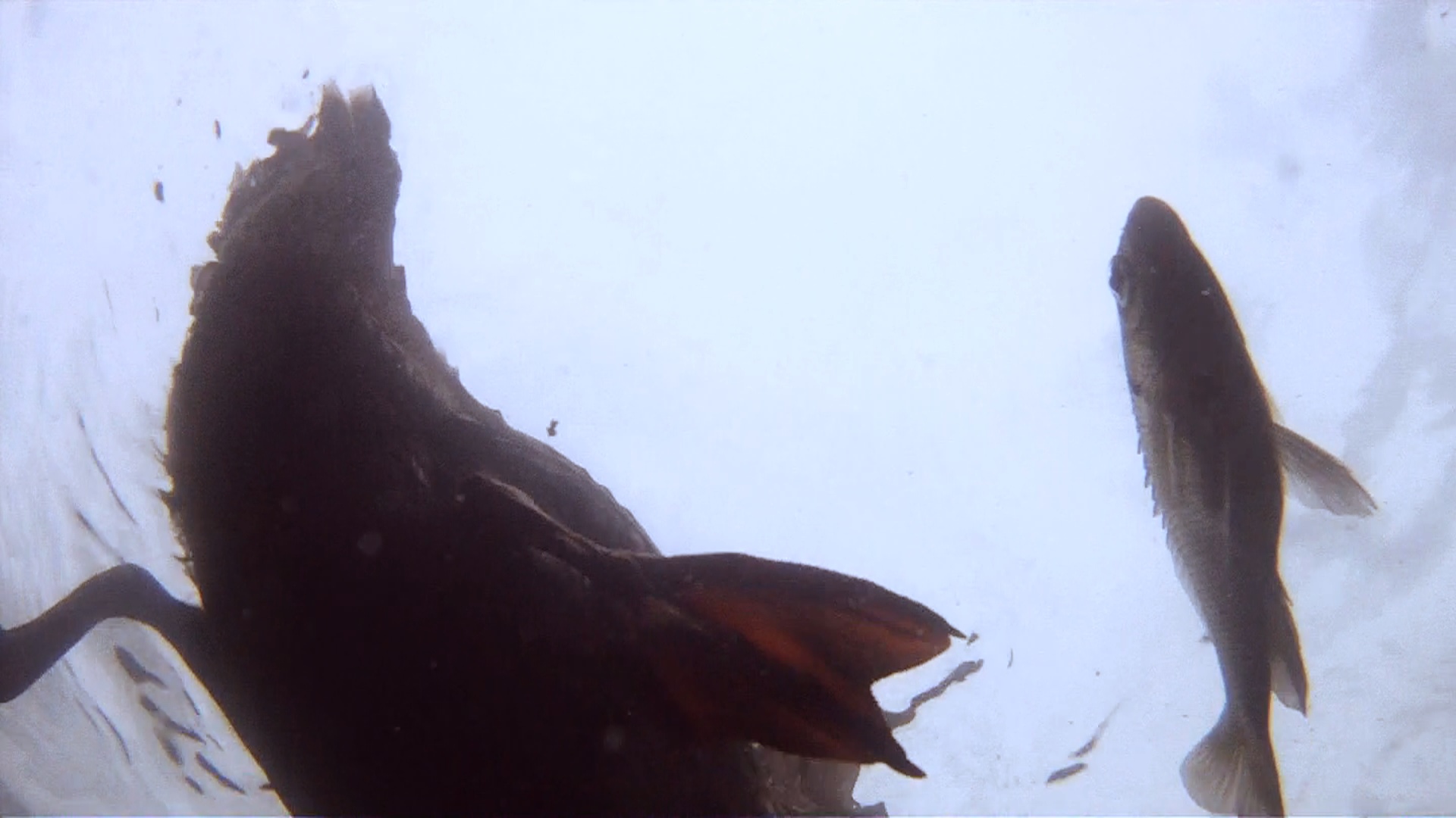 Once the fish were above the camera, the ducks finally moved in and began to feed.