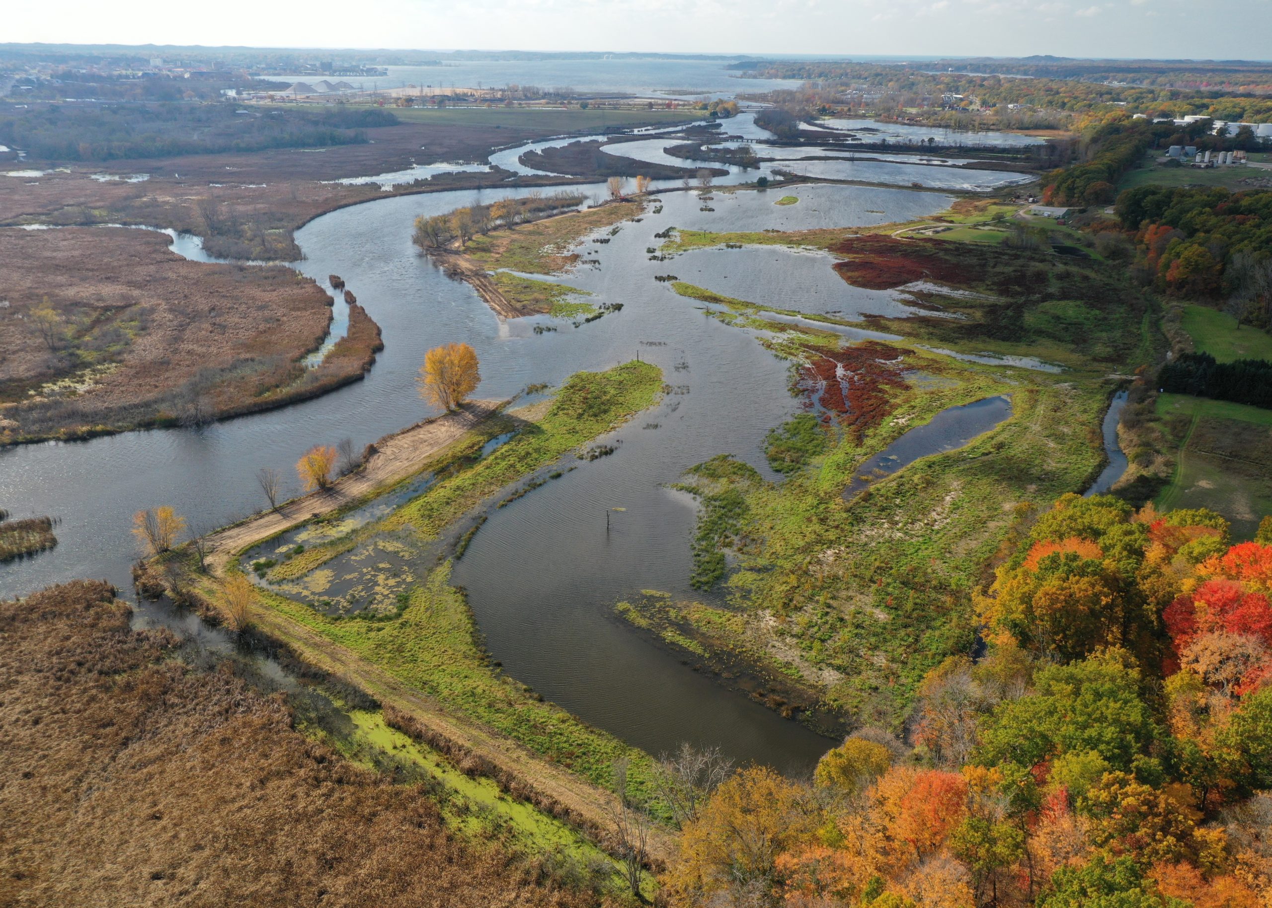 Featured image: The restoration of the Lower Muskegon River site was completed in 2021 after the removal of a historic farm dike and restoration of the wetland area. (Photos courtesy of GEI Consultants)