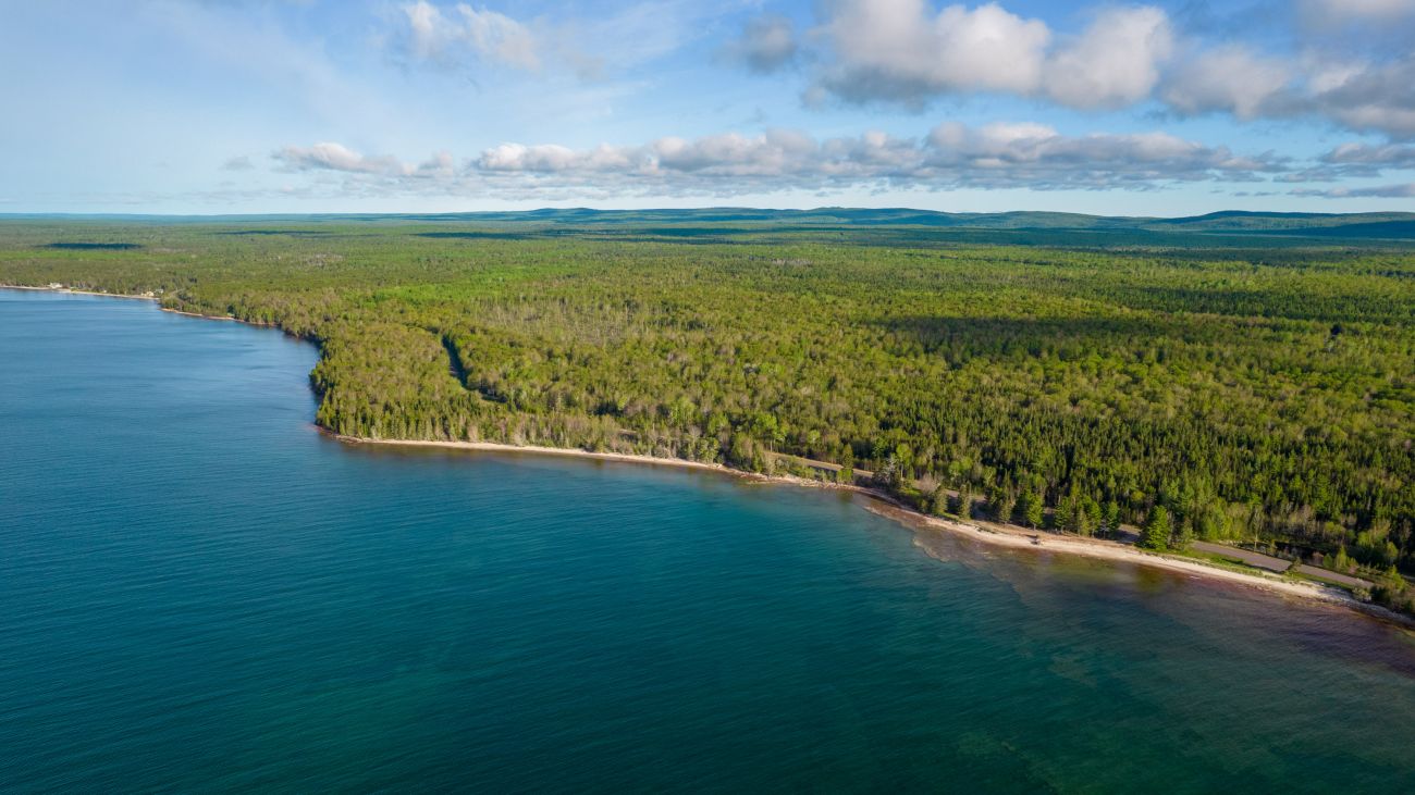 Featured image: After a New York hedge fund put more than 50 square miles of the Keweenaw Peninsula up for sale, local government officials, recreation groups and others mobilized to find a buyer who would keep the property open to the public. (Photo courtesy of The Nature Conservancy, by Quincy Aerial Photography via Bridge Michigan)