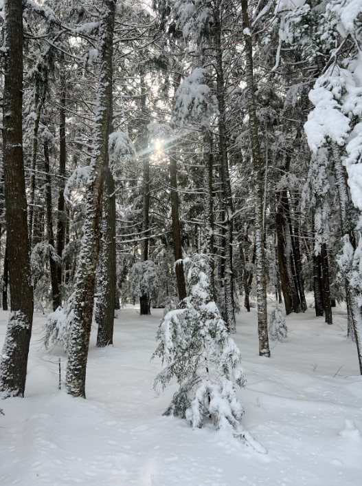 A thick, fresh blanket of snow covered Munising’s tall pines and vast shores. I was beginning to get the hype. That’s an understatement, I was amazed. I had forgotten how a fresh snowfall makes a cloudy day bright and just how quiet the woods become after nature’s sound proofing. We may not be in love yet, but I was starting to like it and eager to explore.
