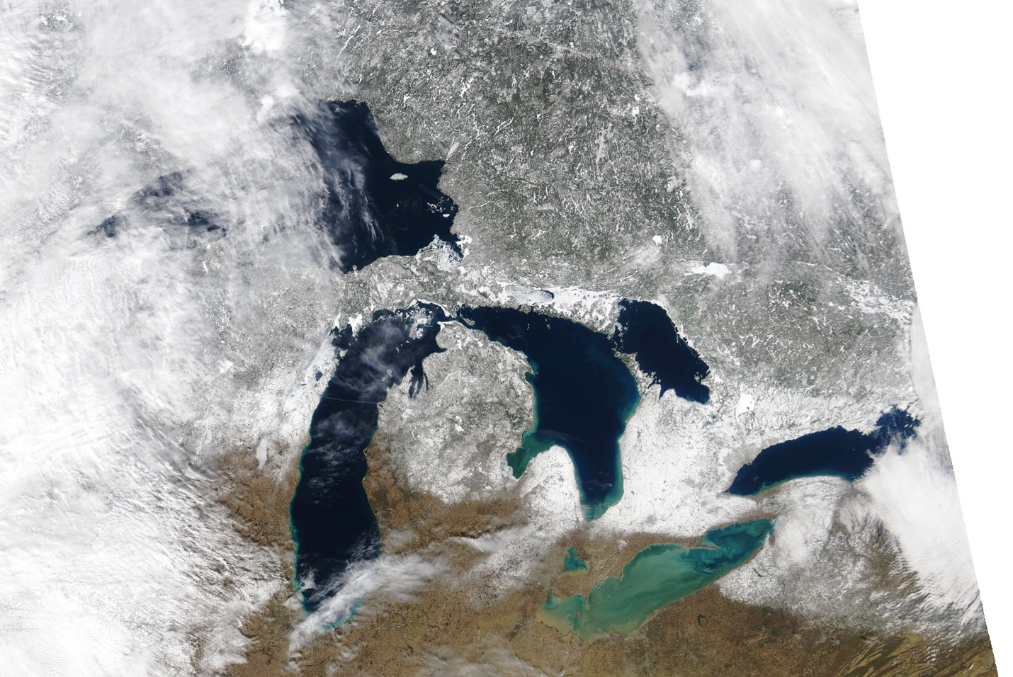 Featured image: MODIS satellite photograph taken of the Great Lakes on March 8, 2023. (Photo Credit: National Oceanic and Atmospheric Administration)