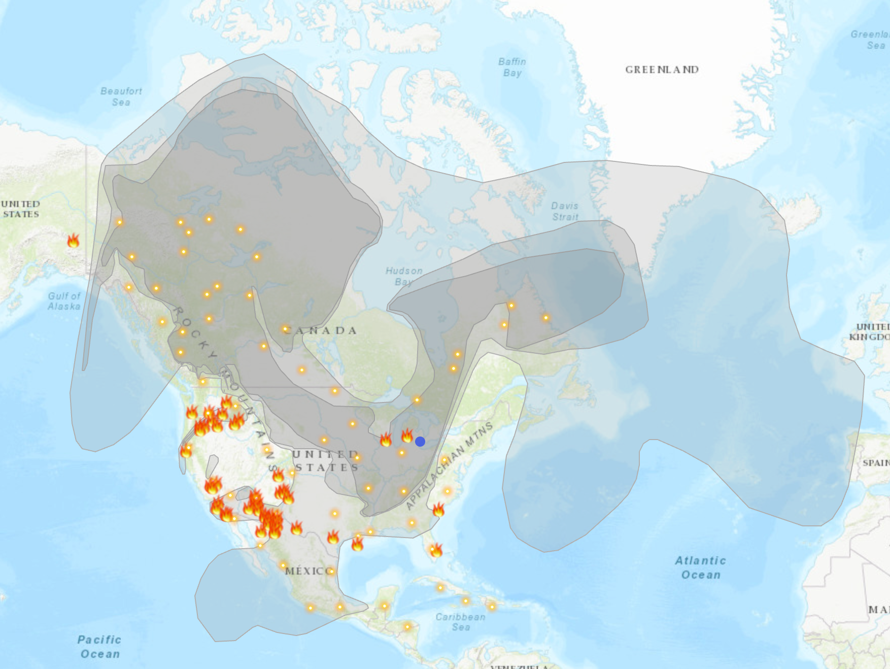 Large-scale wildfires produce significant smoke that can affect air quality, reducing visibility and causing haze and potential health concerns. Inhalation of fine particulate matter can irritate the respiratory system, particularly for individuals with pre-existing respiratory conditions, the elderly, and young children.