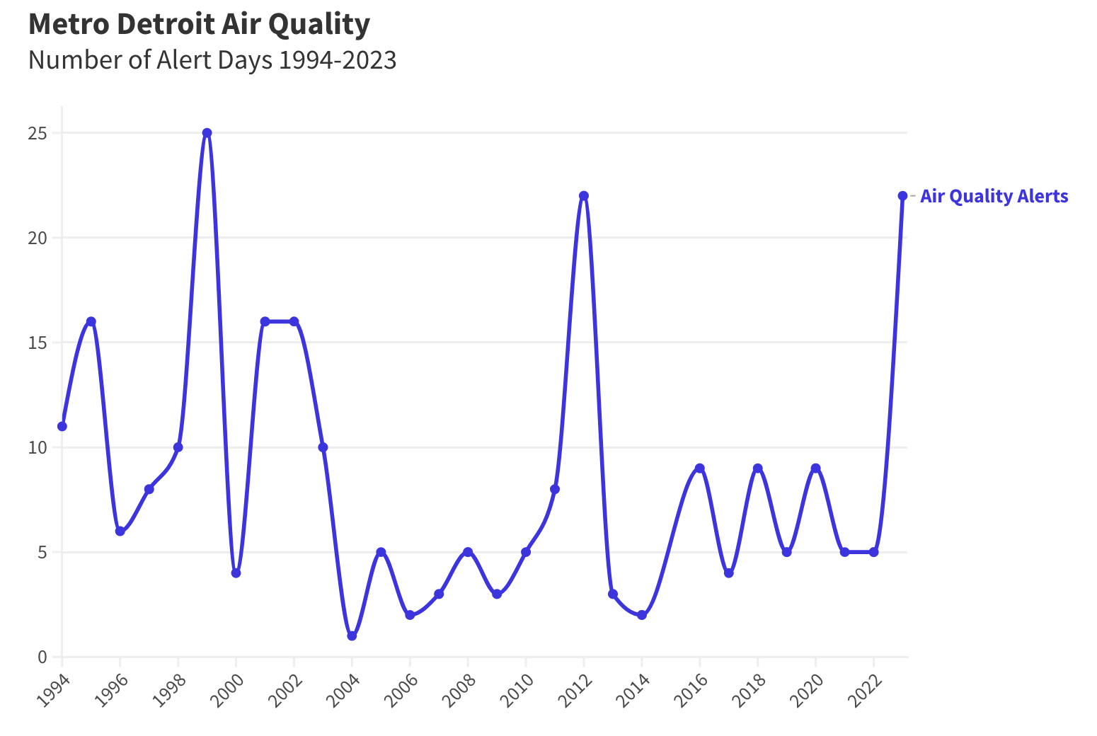 Of the 23 alerts issued by EGLE in 2023 for metro Detroit, 13 have involved ozone, more than has occurred in a single year since 2012. EGLE issued its earliest-ever ozone alert on April 15, 2023.