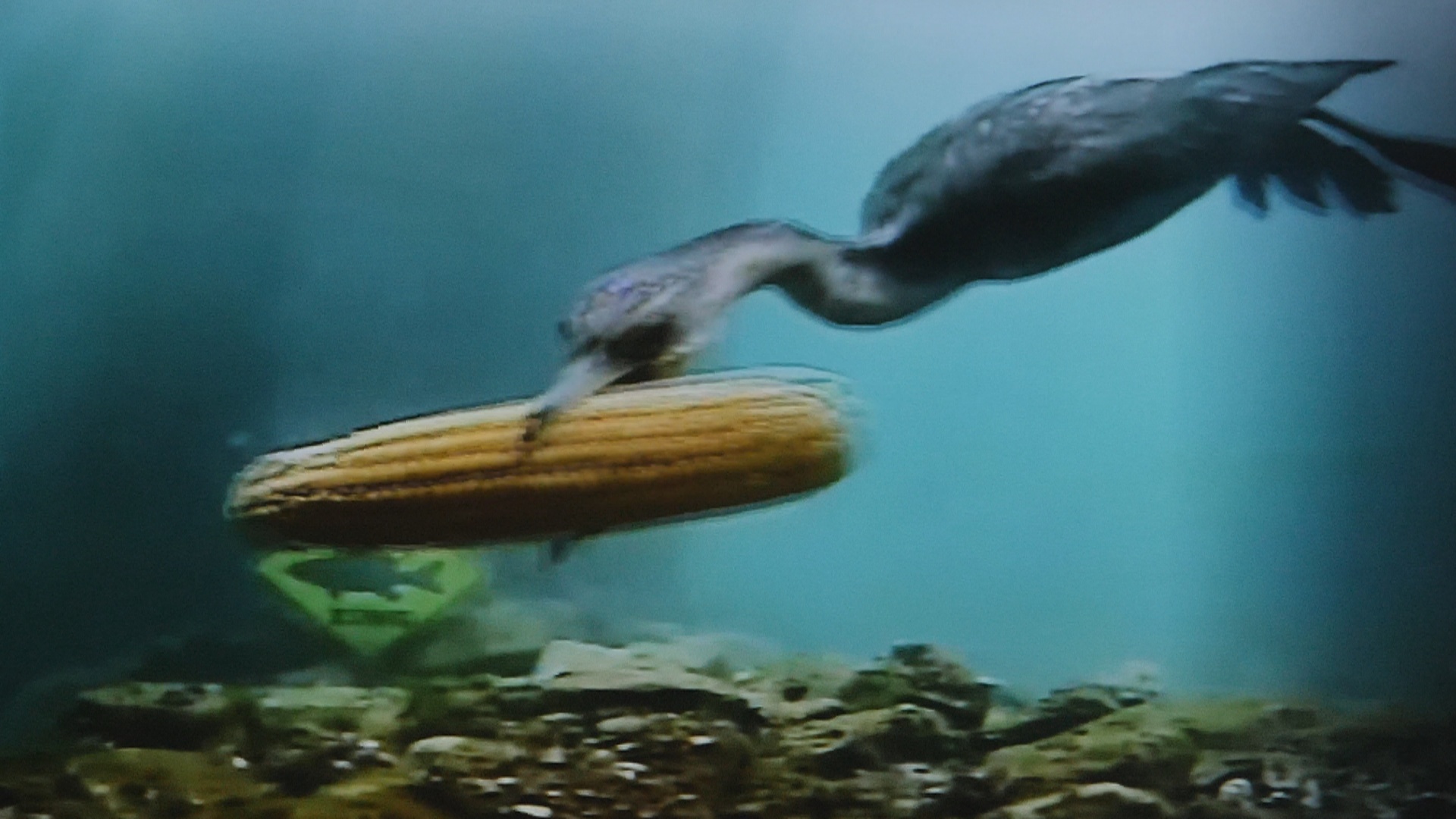 Never in a sturgeon’s lifetime would we have believed a bird would dive down to the river bottom to steal an ear of corn from a carp.