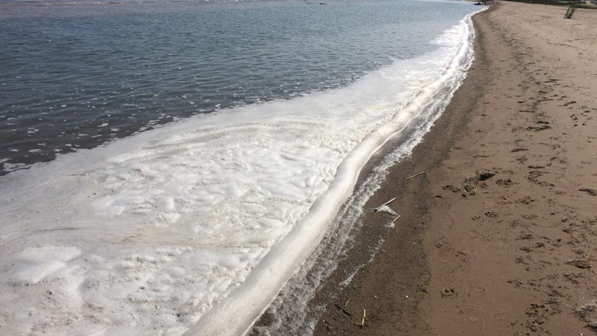 Featured image: PFAS foam on a beach near the decommissioned Wurtsmith Air Force Base in Iosco County, Mich. (Great Lakes Now Episode 1025)
