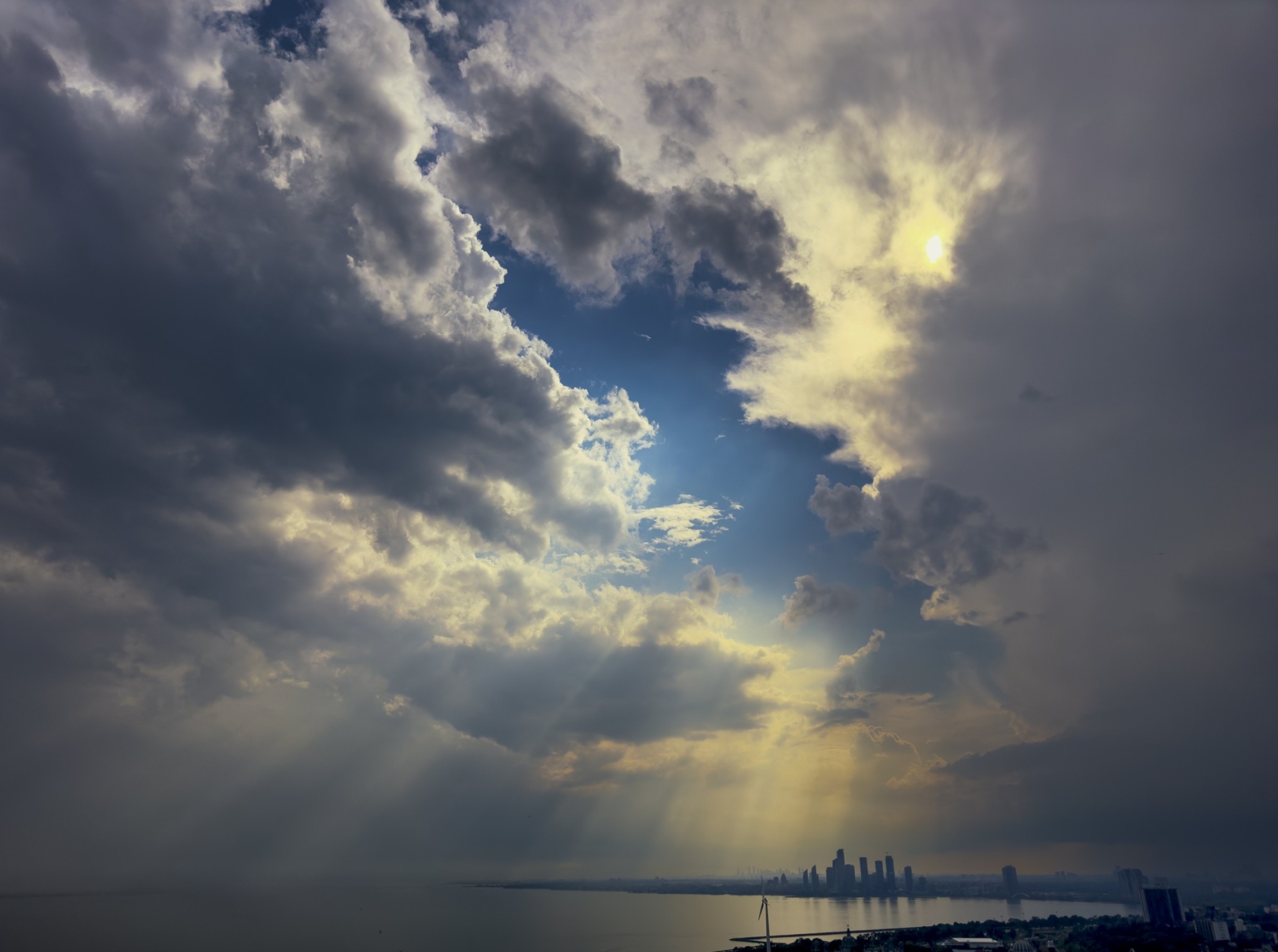 Featured image: Sun rays break through the clouds above Toronto in June 2024. Toronto is one of the Great Lakes cities that does not shut off water for late payment. Photo © J. Carl Ganter / Circle of Blue