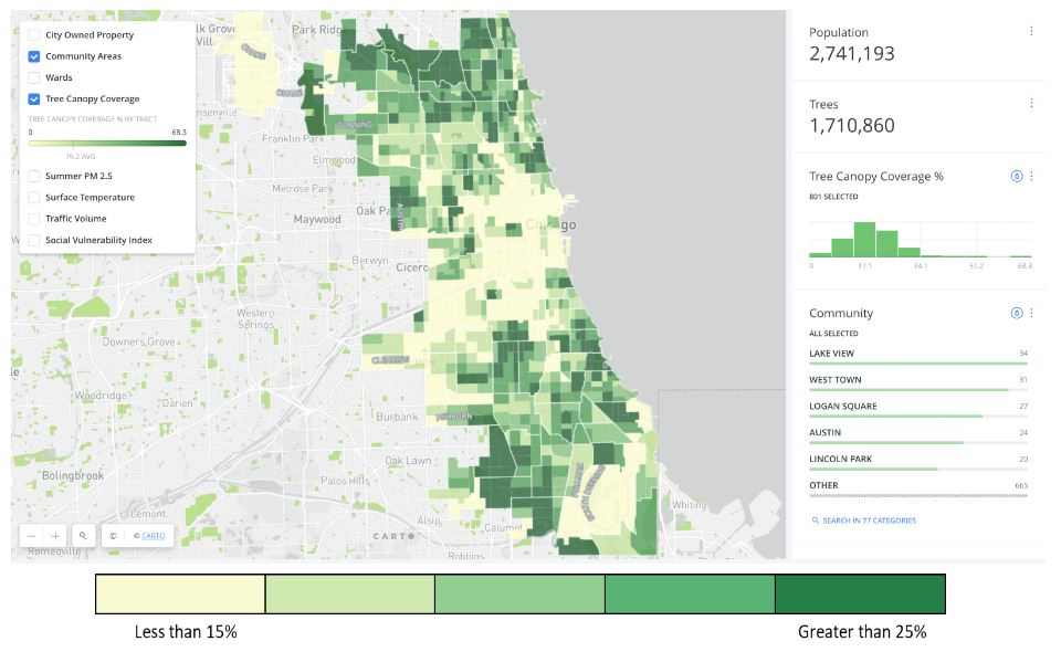 Chicago experienced a net loss of 69,000 street trees from 2011 to 2021. Our Roots began in 2022 with a goal to plant 75,000 trees within five years. Mansour says the organization is now over halfway to this goal.