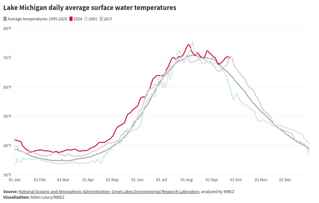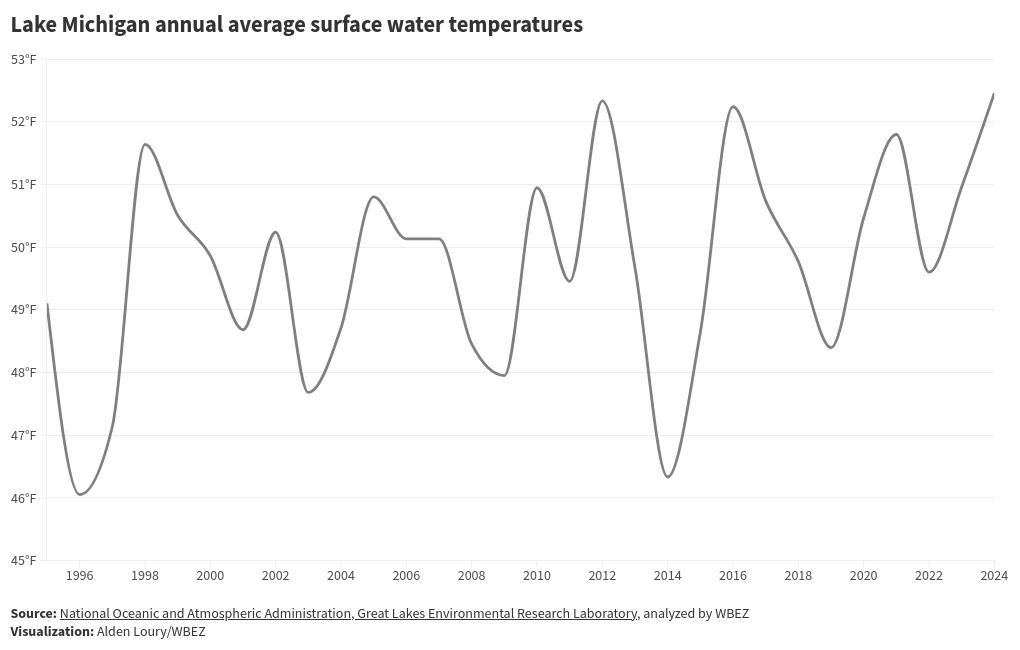 Lake Michigan started the year at around 42 degrees. That’s the hottest temperature on the first of the year since scientists started keeping track in 1995.
