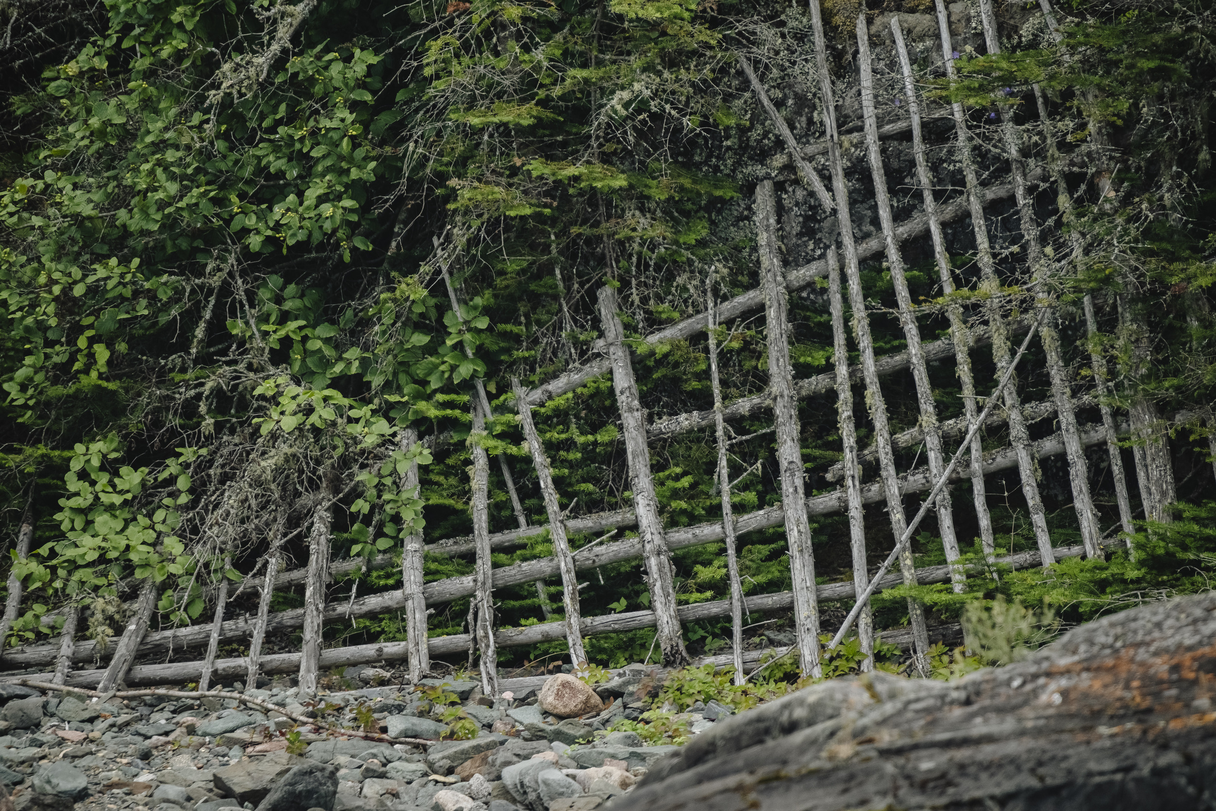There is a little bit of human activity on the Slates — a lighthouse that no longer has a keeper, the cabin, a shallow mine shaft that predates the provincial park, a few other boats here and there. Kayakers and researchers travel through here too, sometimes camping at sites around the islands. It’s an unserviced provincial park, meaning there aren’t facilities or staff on site. There’s plenty of undisturbed forest where a shy caribou can hide. There are no trails either, save for the ones created by hooves.