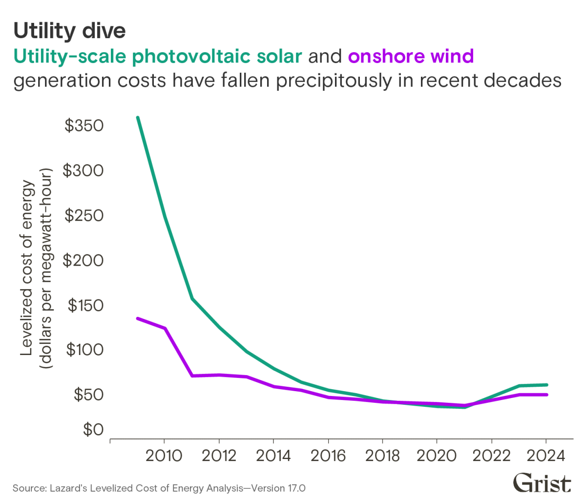 A core irony of climate change is that markets incentivized the wide-scale burning of fossil fuels beginning in the Industrial Revolution, creating the mess humanity is mired in, and now those markets are driving a renewables revolution that will help fix it. Coal, oil, and gas are commodities whose prices fluctuate. As natural resources that humans pull from the ground, there’s really no improving on them — engineers can’t engineer new versions of coal.