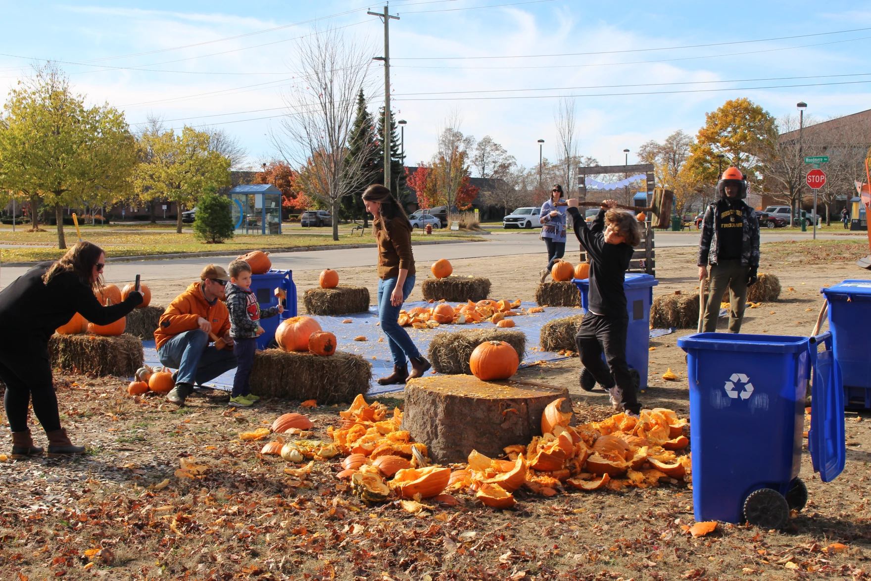 But the adults, like Kristen VanDerKolk, say the kids get the bigger picture, too. Her youngest, 6-year-old Charlie, was sad about the jack-o-lantern’s fate — he gave it a kiss before placing it on the stump to be smashed.