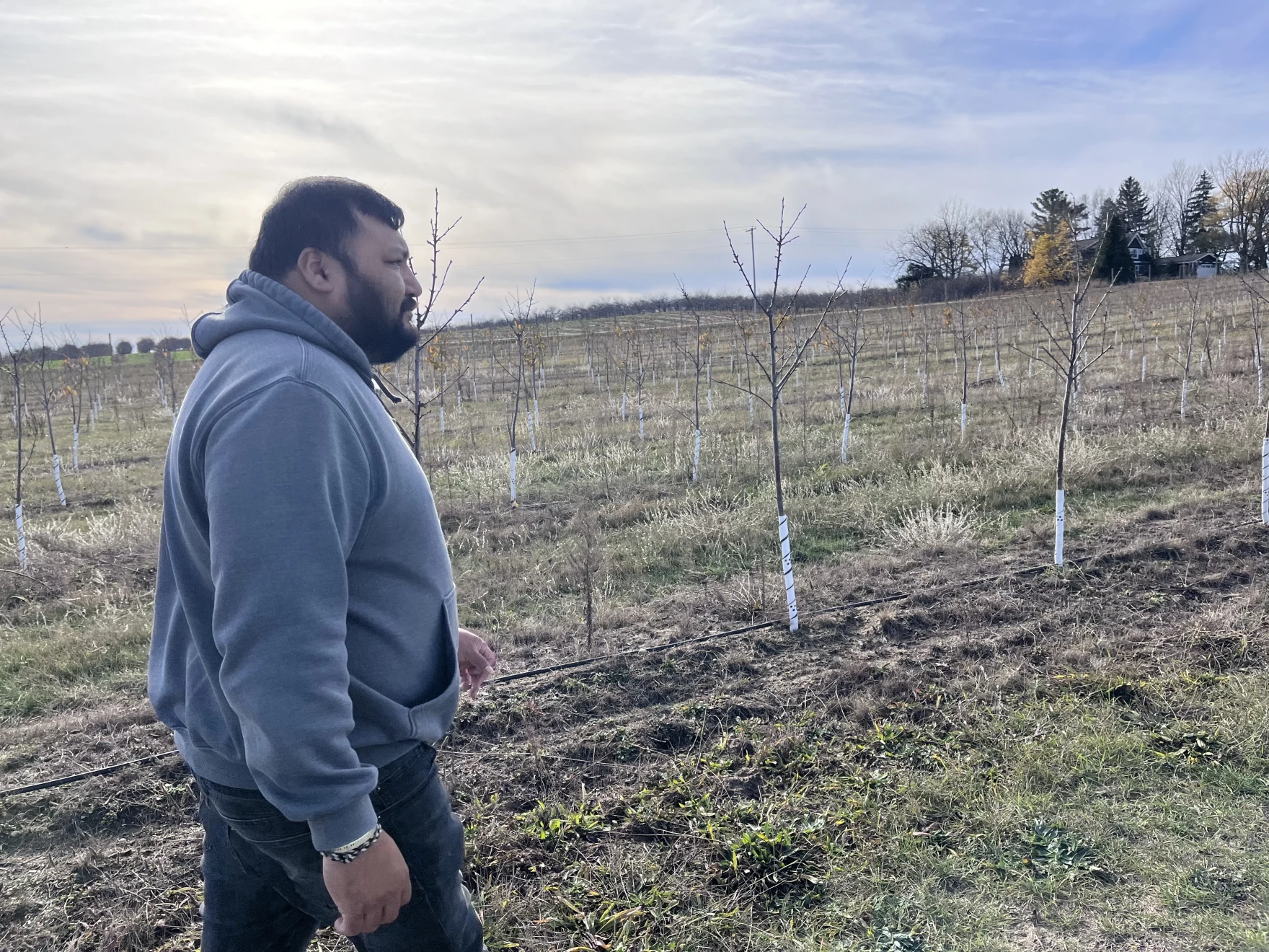 Featured image: Raul Gomez, operations manager at Wunsch Farms, walks through an orchard on the Old Mission Peninsula in November 2024. (Photo: Izzy Ross/IPR News)