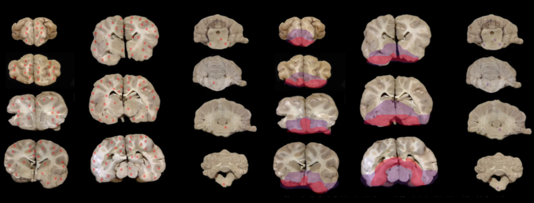 KATZ: Everything was normal. And then he got to the brain. This brain was not normal. It was inflamed — so inflamed that in some areas the brain had probably been pressing against the bear’s skull when it was alive. That brain inflammation is called encephalitis. In this case, it was probably caused by a herpesvirus.