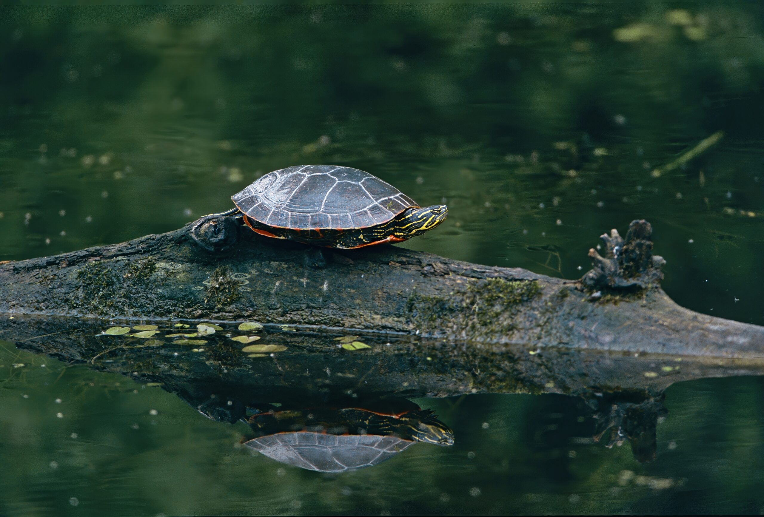 Featured image: Midland Painted Turtle (Chrysemys picta marginata) adult resting on log Detroit, Michigan, USA. (Photo Credit: iStock)