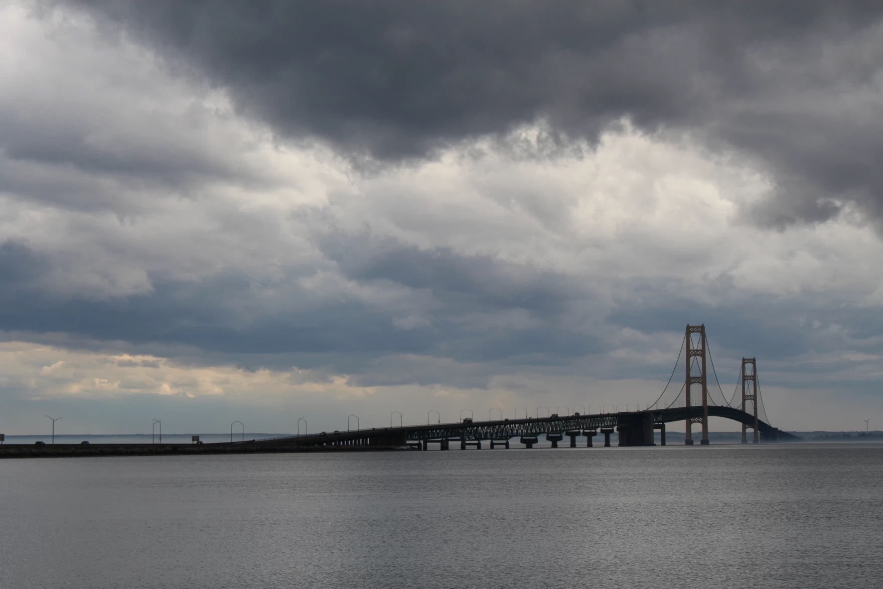 Featured image: Line 5 splits into twin pipelines just west of the Mackinac Bridge, and crosses along the lakebed for four miles. (Photo Credit: Lexi Krupp/Interlochen Public Radio)